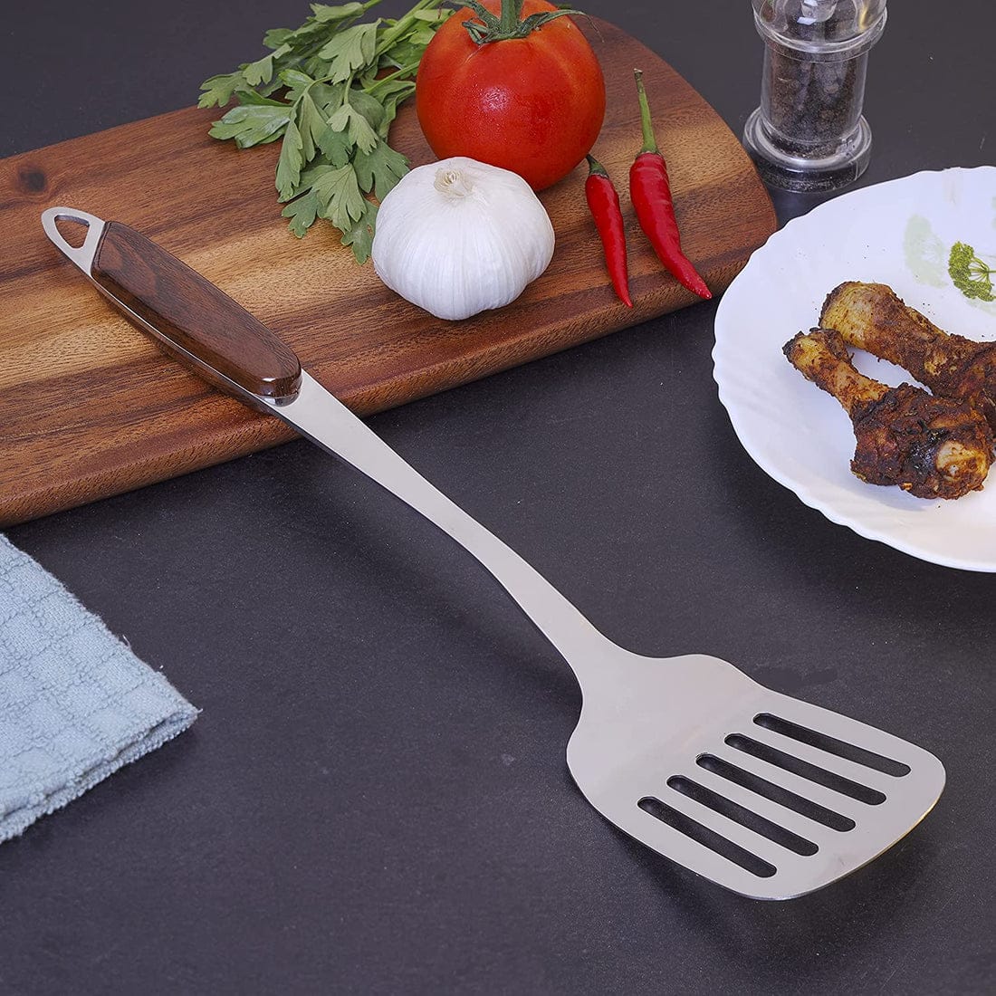 | Description | Sweet Home Highly Durable Stainless Steel Slotted Turner with Wooden Design Handle & Dishwasher Safe BH3118 |